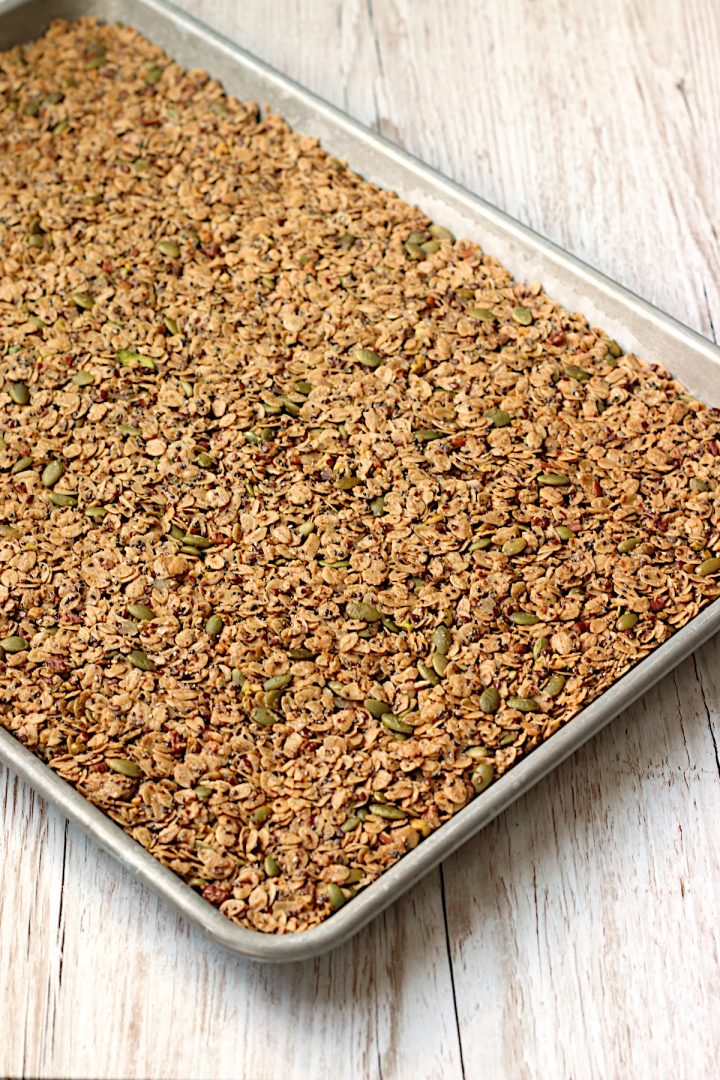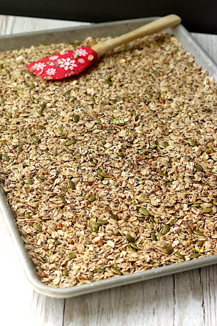 If you are making this granola for someone who follows a gluten-free diet, make sure they are able to tolerate oats and be sure to buy oats that are labeled as “pure” or “gluten-free”.