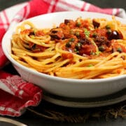 Stir 3 Tablespoons capers, 1/2 cup pitted Kalamata olives, and 1/4 cup minced fresh parsley leaves into the sauce.